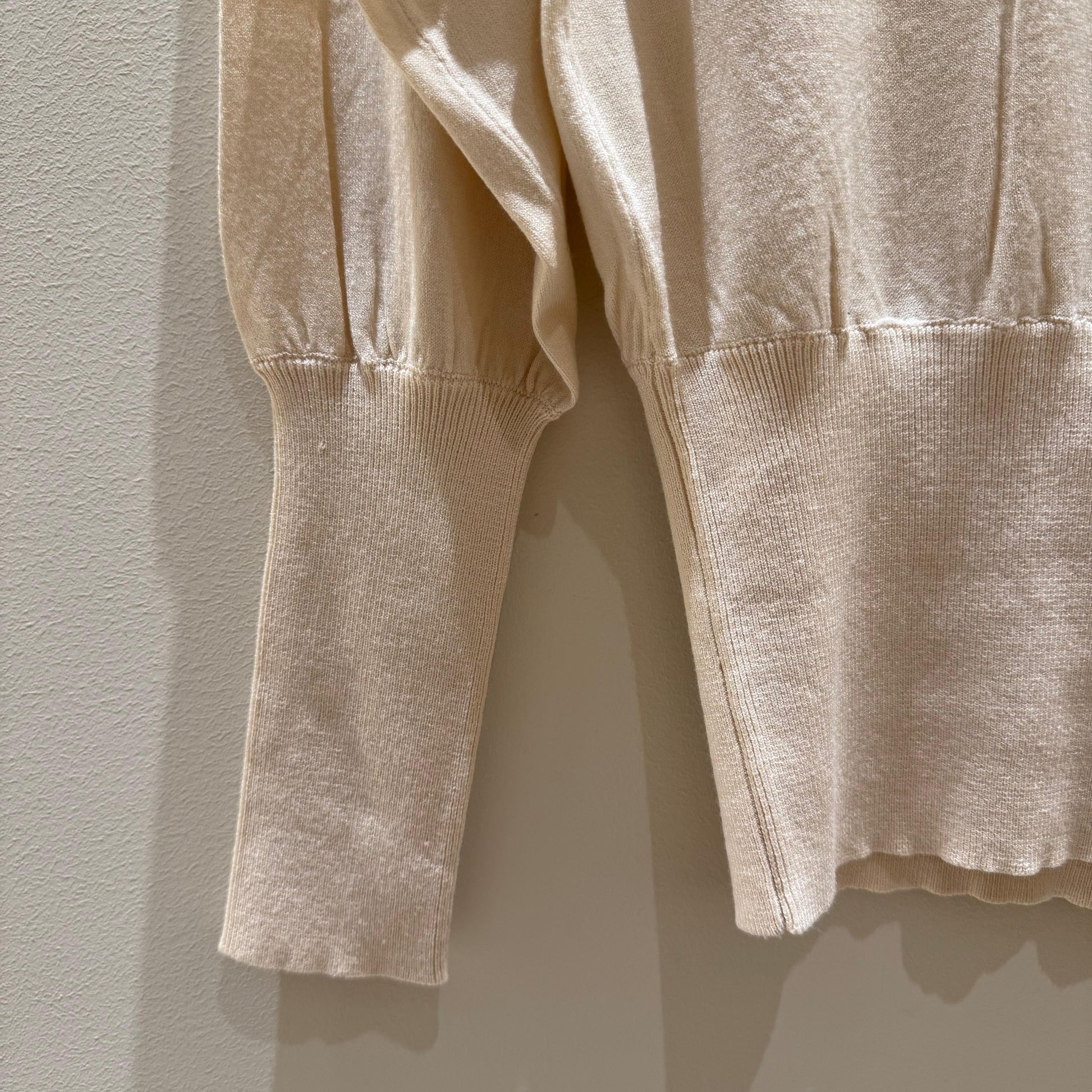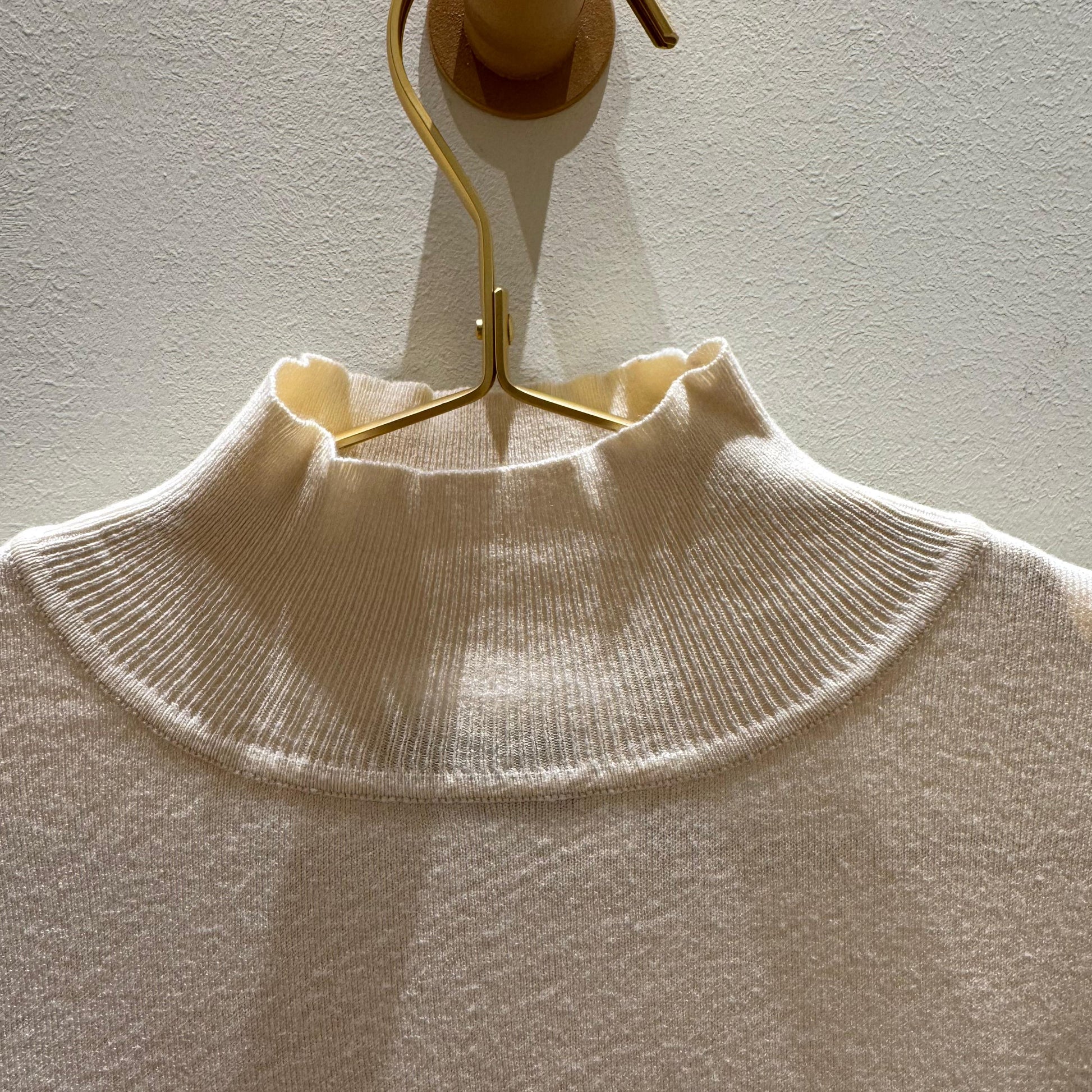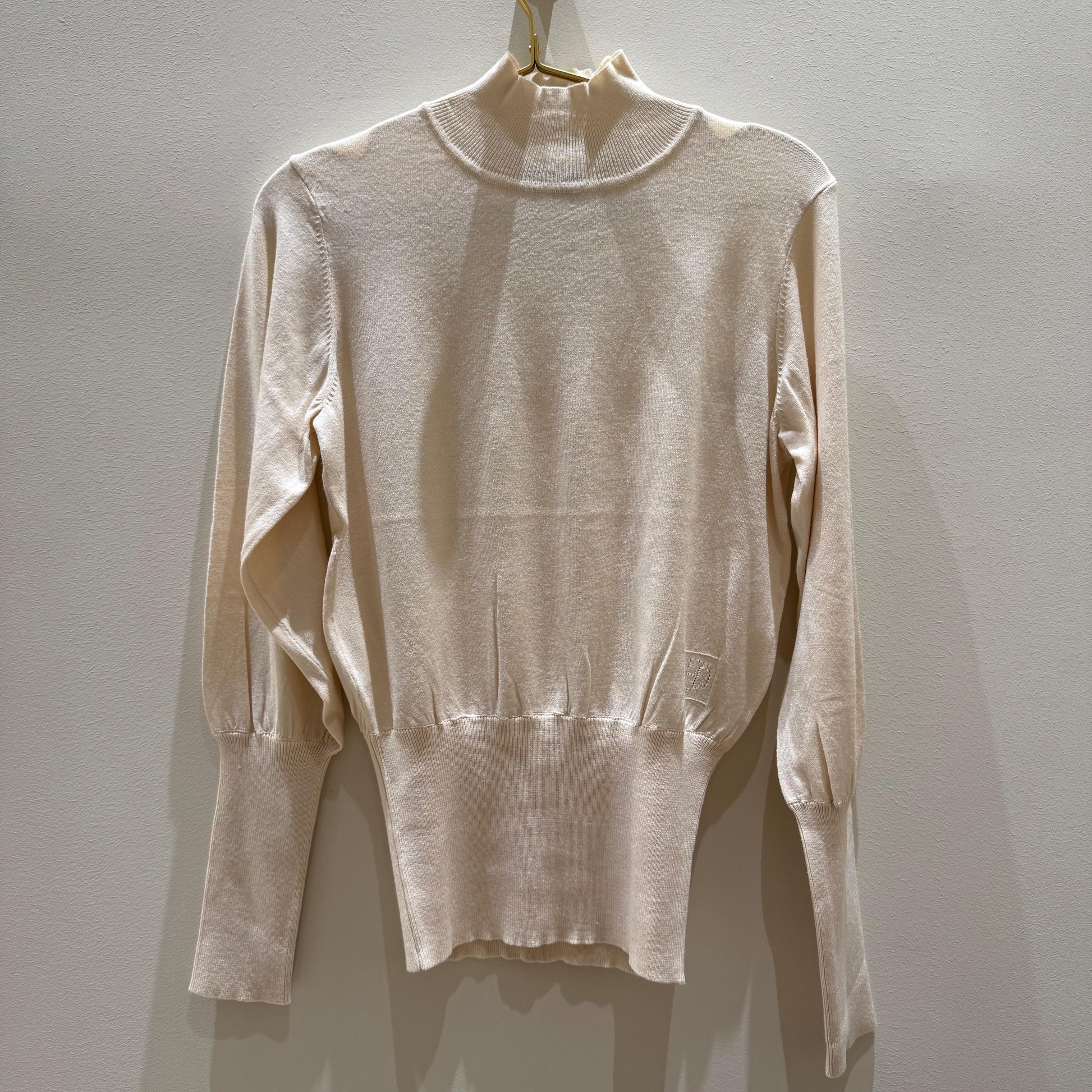 Suéter en color crema de cuello alto con un fit entallado a la cintura y el puño en canalé.